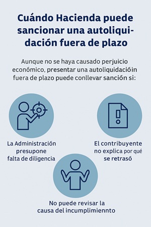 Cuando un contribuyente presenta una autoliquidación fuera de plazo, aunque no haya causado un perjuicio económico, la AEAT puede imponer una sanción, y en estos casos, la falta de diligencia se puede dar por supuesta, porque el simple hecho de presentar tarde ya implica que no se ha cumplido con la obligación en tiempo, es decir, existe culpabilidad por la simple negligencia en el incumplimiento del plazo o retraso sin causa justificada.