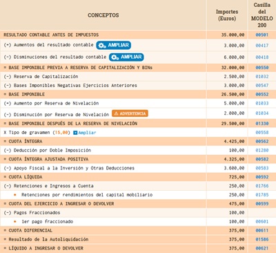 - Otros derechos que permitan reducir la base imponible del Impuesto. Lo más famosos en la actualidad son la reserva de capitalización y la de nivelación. En SuperContable dispone de un SIMULADOR para la reserva de capitalización y OTRO distinto para la reserva de nivelación que le permitirán "jugar y planificar" hasta cuánto puede reducir la base imponible de su impuesto.