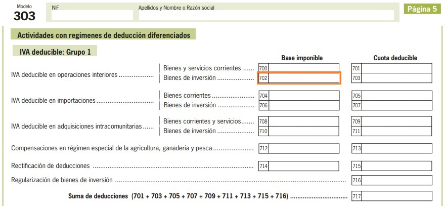 303CASILLA 702. BASE IMPONIBLE DEL IVA DEDUCIBLE EN OPERACIONES INTERIORES CON BIENES DE INVERSIÓN.