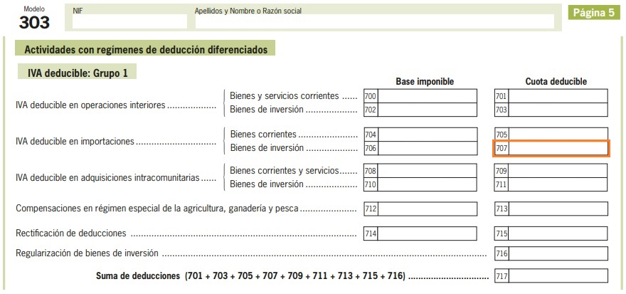 303CASILLA 707. CUOTA DE IVA DEDUCIBLE EN IMPORTACIONES DE BIENES DE INVERSIÓN.