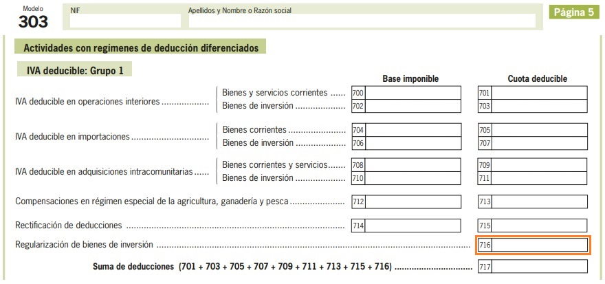 Siguiente: Casilla 717 Modelo 303 IVA. Suma de deducciones