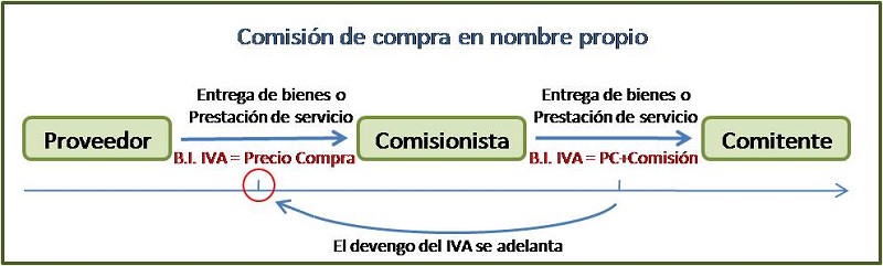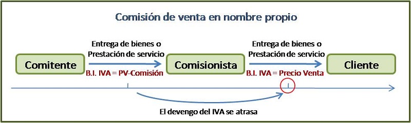 La situación es distinta si el comisionista actúa en nombre propio, debido a la existencia de dos operaciones que son gravadas por el IVA:- La entrega de bienes entre el comitente y el comisionista.