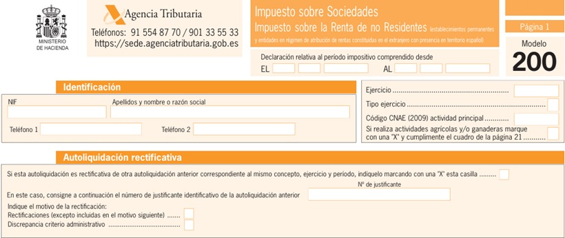 Se deberá marcar con una "X" la casilla de autoliquidación rectificativa de la página 1 del modelo 200, además de consignar el número de justificante de la autoliquidación anterior que se desea rectificar.